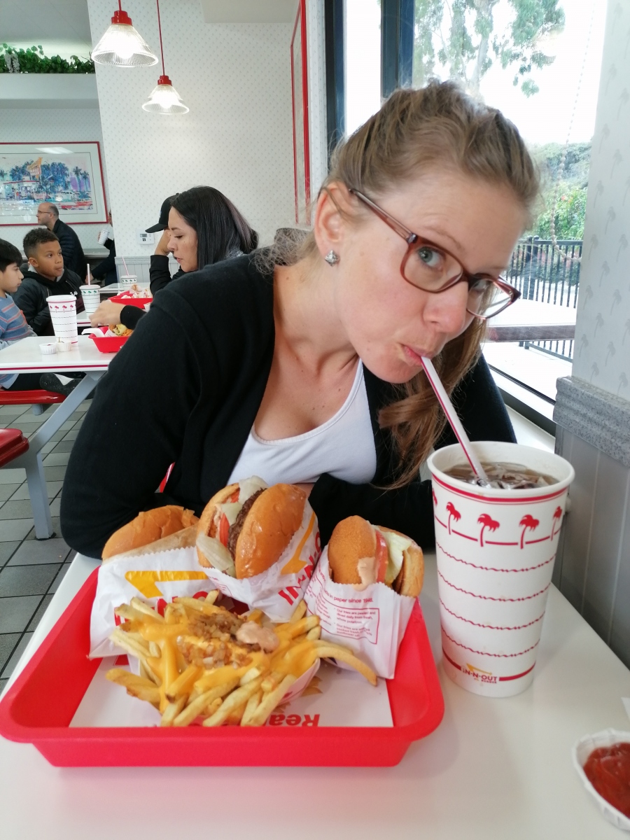 Das Essen war so auch verdient und weil wir mehr Abwechslung wollten ging es zu In&Out Burger 😉 Ich mein, das is immerhin ne ganz andere Burgerkette und sozusagen California’s Own… War auf jeden Fall „was Richtiges“ und machte auch satt und zufrieden. Wegen der ganzen notwendigen Fahrerei war der Tag damit aber auch lang genug und wir sind zurück in unsere hübsche Unterkunft und haben es damit gut sein lassen.