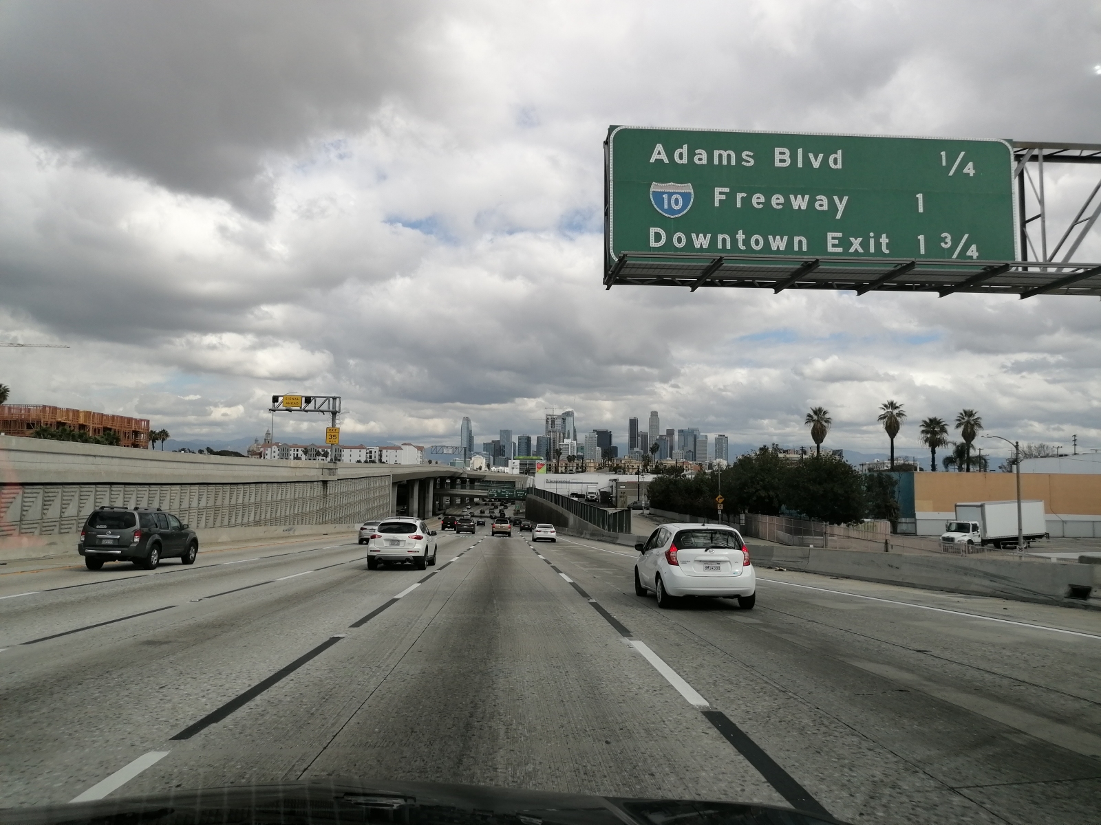 Danach ging’s satt und happy weiter nach L.A.. Wann genau wir die Stadt erreicht hatten, ist irgendwie schwer zu sagen. Das Ballungsgebiet umfasst ne Unmenge von Orten und insgesamt fast 20 Millionen Menschen. Wir wussten lediglich irgendwie, dass wir definitiv drin waren, als die Orte langsam wie in den bekannten Westküsten Hip-Hop-Songs klangen (Longbeach, Inglewood) und als wir innerorts auf ner beidseitig 5-spurigen Straße unterwegs waren. Jupp, das musste wohl L.A. sein. Unsere Unterkunft war ein modernes und angenehm eingerichtetes Hotel/Hostel im Hafengebiet. Der Empfangsmitarbeiter war super freundlich und so kamen wir dort gut an. Wir sind dann noch fix zu Walmart um ein wenig die Grundbedarfe abzudecken, allerdings war nicht alles zu bekommen (Milch, Brot, Klopapier? Fehlanzeige). Whatever. Zurück zum Zimmer und Feierabend. Natürlich inklusive ein wenig Tagesplanung für L.A..