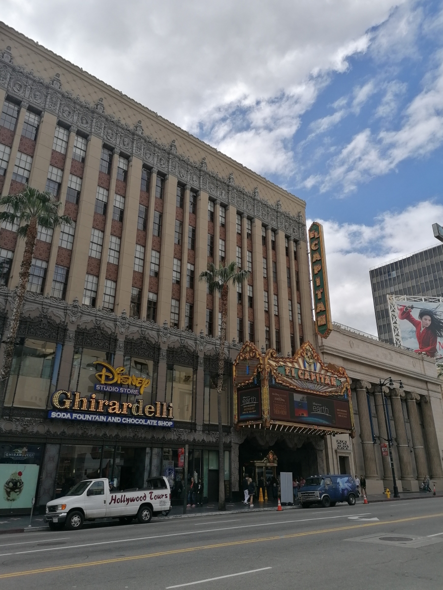 Die so gesparte Kraft haben wir am nächsten Tag gut brauchen können. Über den Sunset und Hollywood-Boulevard ging’s zum Walk of Fame. Touri-Hotspot und Falle Nummer Eins aber eben auch ein Must-See. Wir haben im Dolby Theatre (da wo immer die Oscars stattfinden) geparkt und sind dann losgewackelt. Ich hab fleißig Sterne souffliert und Tina war fleißig so wenig wie möglich genervt von meiner ständigen Begeisterung (James Dean! Kaley Cuoco! Johnny Cash! Ryan Reynolds! Marylin Monroe!… ich kann halt nicht anders). Als Snack gab es Hot Dogs von einem der mexikanischen Streetfood-Stände und das kann ich nur wärmstens empfehlen. Hot Dogs mit Avocado, Pico de Gallo und ner feinen mexikanischen Wurst? Das macht nem Danish Hotdog echte Konkurrenz. Natürlich haben wir auch noch an Graumans’s Chinese Theater bei den Handabdrücken angehalten. Meine Hände sind übrigens genauso groß, wie die von Bruce Willis. Das Ganze is schon interessant anzusehen und wenn man mal innehält mit all den Touristen und Straßenkünstlern und Tagedieben schon auch ne Freakshow. Das Wetter war übrigens einwandfrei weswegen unser Plan wunderbar aufging erst jetzt zum Malibu Beach und auf den berühmten Santa Monica Pier zu fahren. Parken war erstmal nicht ganz so easy aber dann gab’s doch noch was preiswert und nah an ner Parkuhr direkt am Strand – Geduld macht sich bezahlt. Der Strand, die Wege und auch der Pier waren gut gefüllt (kaum Anzeichen von Corona-Effekten) und die Leute touristeten fleißig rum. Wir natürlich auch, aber schon etwas um Abstand bemüht. In einer kleinen Arcade (Automaten-Spielhalle für Kids) auf dem Pier haben wir dann beim Air-Hockey, Mini-Basketball und Street Fighter spielen ein paar Cent gelassen und uns prächtig amüsiert. Bilder vom Ende der Route 66 haben wir natürlich auch gemacht, wo wir doch jetzt so prägende Erfahrungen auf diesem Highway gesammelt haben.
