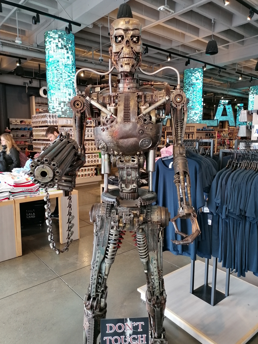 Danach ging’s satt und happy weiter nach L.A.. Wann genau wir die Stadt erreicht hatten, ist irgendwie schwer zu sagen. Das Ballungsgebiet umfasst ne Unmenge von Orten und insgesamt fast 20 Millionen Menschen. Wir wussten lediglich irgendwie, dass wir definitiv drin waren, als die Orte langsam wie in den bekannten Westküsten Hip-Hop-Songs klangen (Longbeach, Inglewood) und als wir innerorts auf ner beidseitig 5-spurigen Straße unterwegs waren. Jupp, das musste wohl L.A. sein. Unsere Unterkunft war ein modernes und angenehm eingerichtetes Hotel/Hostel im Hafengebiet. Der Empfangsmitarbeiter war super freundlich und so kamen wir dort gut an. Wir sind dann noch fix zu Walmart um ein wenig die Grundbedarfe abzudecken, allerdings war nicht alles zu bekommen (Milch, Brot, Klopapier? Fehlanzeige). Whatever. Zurück zum Zimmer und Feierabend. Natürlich inklusive ein wenig Tagesplanung für L.A..