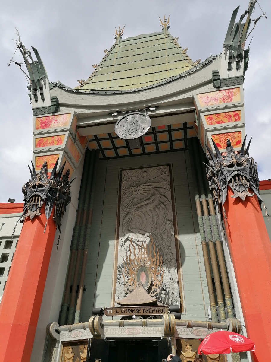 Die so gesparte Kraft haben wir am nächsten Tag gut brauchen können. Über den Sunset und Hollywood-Boulevard ging’s zum Walk of Fame. Touri-Hotspot und Falle Nummer Eins aber eben auch ein Must-See. Wir haben im Dolby Theatre (da wo immer die Oscars stattfinden) geparkt und sind dann losgewackelt. Ich hab fleißig Sterne souffliert und Tina war fleißig so wenig wie möglich genervt von meiner ständigen Begeisterung (James Dean! Kaley Cuoco! Johnny Cash! Ryan Reynolds! Marylin Monroe!… ich kann halt nicht anders). Als Snack gab es Hot Dogs von einem der mexikanischen Streetfood-Stände und das kann ich nur wärmstens empfehlen. Hot Dogs mit Avocado, Pico de Gallo und ner feinen mexikanischen Wurst? Das macht nem Danish Hotdog echte Konkurrenz. Natürlich haben wir auch noch an Graumans’s Chinese Theater bei den Handabdrücken angehalten. Meine Hände sind übrigens genauso groß, wie die von Bruce Willis. Das Ganze is schon interessant anzusehen und wenn man mal innehält mit all den Touristen und Straßenkünstlern und Tagedieben schon auch ne Freakshow. Das Wetter war übrigens einwandfrei weswegen unser Plan wunderbar aufging erst jetzt zum Malibu Beach und auf den berühmten Santa Monica Pier zu fahren. Parken war erstmal nicht ganz so easy aber dann gab’s doch noch was preiswert und nah an ner Parkuhr direkt am Strand – Geduld macht sich bezahlt. Der Strand, die Wege und auch der Pier waren gut gefüllt (kaum Anzeichen von Corona-Effekten) und die Leute touristeten fleißig rum. Wir natürlich auch, aber schon etwas um Abstand bemüht. In einer kleinen Arcade (Automaten-Spielhalle für Kids) auf dem Pier haben wir dann beim Air-Hockey, Mini-Basketball und Street Fighter spielen ein paar Cent gelassen und uns prächtig amüsiert. Bilder vom Ende der Route 66 haben wir natürlich auch gemacht, wo wir doch jetzt so prägende Erfahrungen auf diesem Highway gesammelt haben.