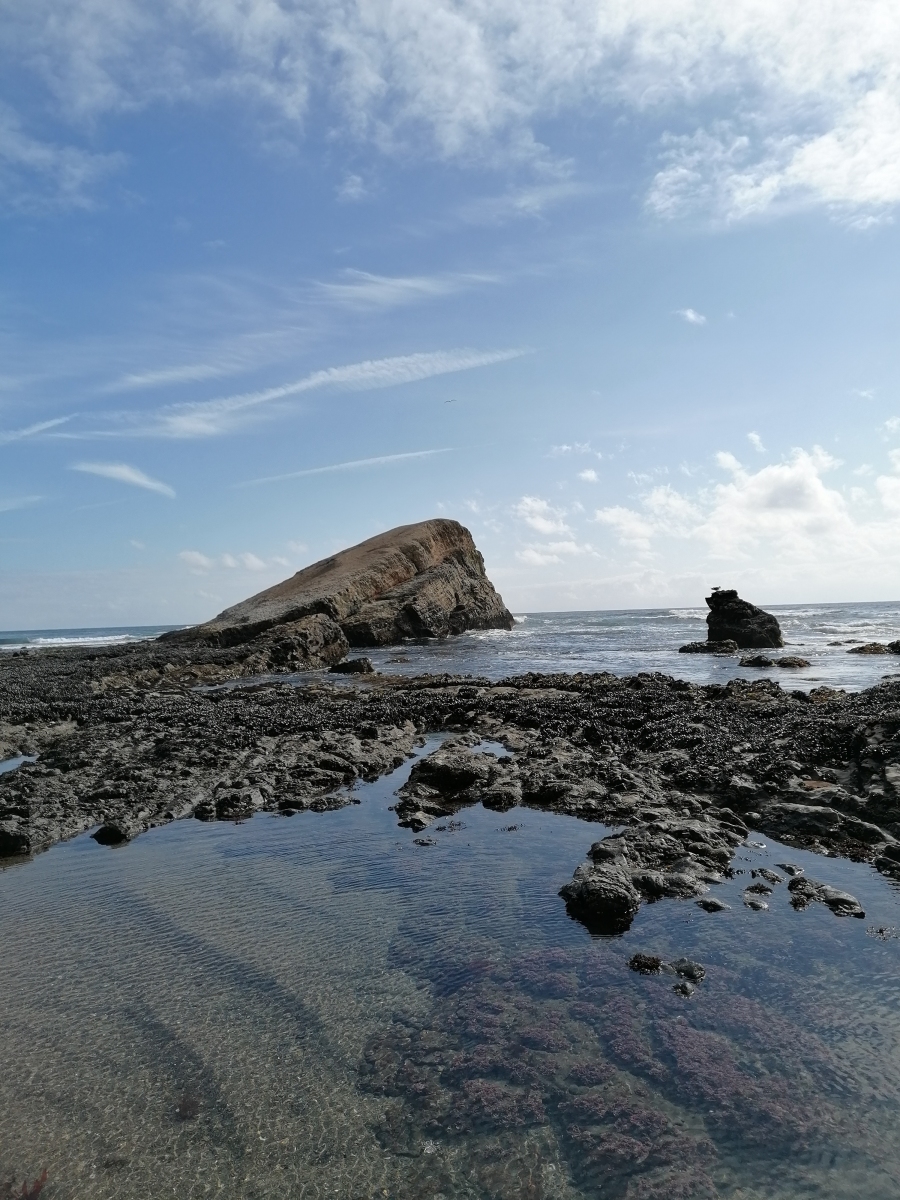 Ein wirklich toller Strandabschnitt, durch die Gezeiten war uns auch ein Blick auf einige Küstenbewohner möglich, die wir so noch nicht kannten. Seeanemonen, schillernde Algen und jede Menge kleine Einsiedlerkrebse in den buntesten Häuschen. Man kann schon Nackenstarre bekommen, wenn man so über den Strand wandert, die Augen stetig nach unten gerichtet.