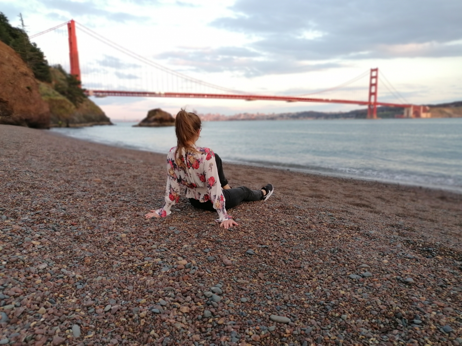Der Tag war von Anfang an einfach nur toll. Die ganze Stadt mit den bunten Häuschen in jeder Straße, an jeder Ecke und auf hundert Hügeln ist einfach wunderschön. Ich weiß, dass das gerade eine besondere Situation ist und die Stadt normalerweise mehr als überfüllt mit Menschen sein muss. Aber ich bin absolut begeistert. Natürlich wollte ich deswegen noch viel viel mehr sehen. Meine Liste war lang genug um die folgenden Tage zu füllen. Wir besuchten somit auch einige Strände, eher eine Strandkette auf der westlichen Seite der Golden Gate Bridge. Und zwar den Marshall Beach – für einen weiteren, hervorragenden Blick auf die rote Brücke, Baker Beach – für einen leicht abenteuerlichen Spaziergang, China Beach – wo sogar Delfine im Wasser zu entdecken waren. Der spontane Spaziergang entlang der Strände führte uns zum Lands End Trail (es machte nun keinen Sinn mehr das Auto zu holen), der uns zum Lands End Labyrinth brachte. Eigentlich ist es nur ein mit Steinen gelegtes Labyrinth. Aber es wurde sehr liebevoll aufgebaut und es liegt direkt neben dem Mile Rock Beach, der mit seinen Felsen und den grünen Hügeln eine idyllische Atmosphäre und tollen Blick auf den offenen Pazifik bietet.