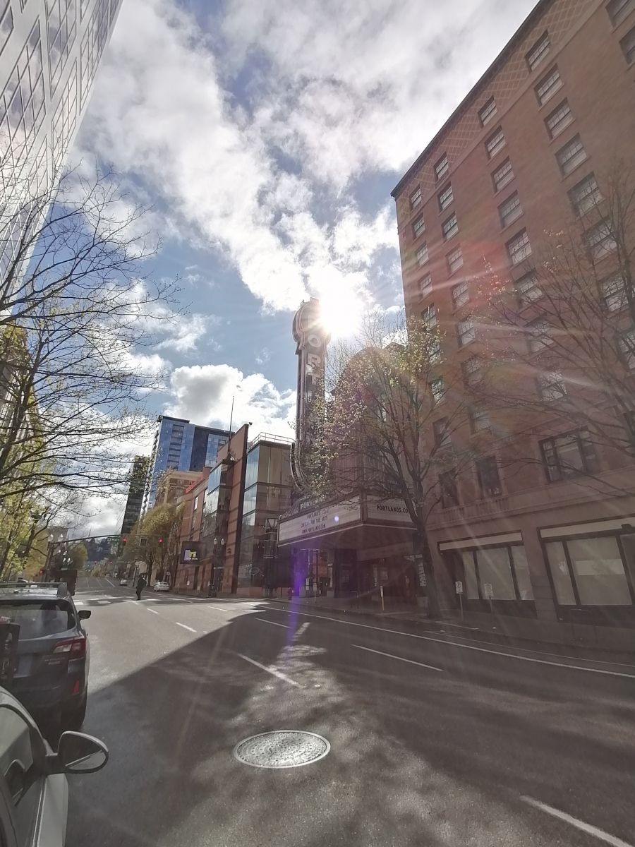 Unser Hotel hatte eine perfekte Lage, so dass wir die erste Tour zu Fuß machen konnten. Natürlich hatte in der Innenstadt fast alles geschlossen, aber davon ließen wir uns nicht aufhalten. Dann ist eben der Chinesische Garten geschlossen und der Springbrunnen im Keller Park trocken. Dennoch hatten wir einen tollen Spaziergang durch Old Town und Downtown Portland. Überall sind tolle alte Metallschilder zu finden, die meiner Meinung nach vorrangig die Stadt auszeichnen. Vorbei am Dante’s Inferno mit dem berühmten „Keep Portland Weird“-Wandbild und dem Must-See am Flussende von Old Town, dem „White Stag Sign“, stießen wir auf den Japanese American Historical Plaza. Dort gibt es eine Allee voller Kirschbäume, die auch im leicht verblühten Zustand einen gewissen Charme abgaben. Zwischen der Burnside Bridge und der Hawthorne Bridge folgten wir dem Waterfront Park Trail und suchten während dessen nach dem kleinsten Park der Welt. Der war wirklich nicht leicht zu finden. Doch wir haben nicht aufgegeben ;-). Ab dann drehten wir dem Fluss den Rücken zu und gingen Richtung Downtwon zum Keller Fountain Park und der Arlene Schnitzer Music Hall.