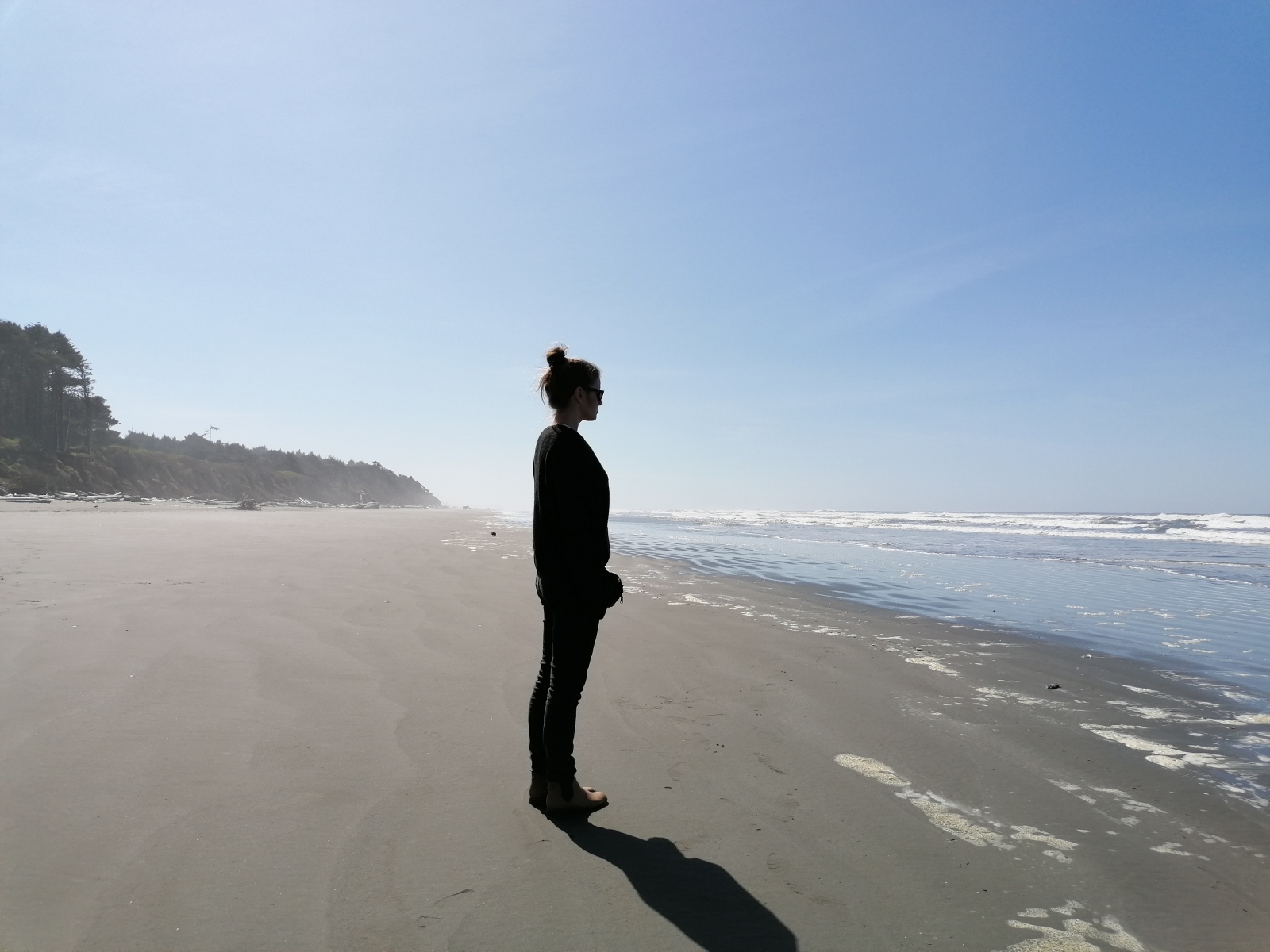 Weil der Wind aber nicht nachlassen wollte, wurden nicht mehr als fünf Löcher draus und wir fuhren weiter. Das war auch die letzte offene Anlage jedweder Art, die sich finden ließ. Wir fuhren und fuhren, mäßiges Wetter, keine Aussicht auf Obdach… Gibt bessere Voraussetzungen. Wir haben uns mit Hörbüchern (Danke Ceci!) und Musik abgelenkt und uns langsam in die nötige Stimmung gebracht: „Hauptsache IRGENDWO stehen“. Mit dem Credo auf den Lippen fuhren wir jetzt auch mal die kleineren Seitenstraßen kurz an um nach Möglichkeiten, einfach an ner Straße zu stehen, zu schauen. Nur am Highway direkt wollten wir auch wegen des Unfallrisikos nicht parken. Anfangs lief das nicht so toll. In jedem Loch, in das wir schauten, saß schon ne Maus drin. Es gibt also noch reichlich Nomaden wie uns hier. Dann auf einem Weg entlang eines kleinen Baches, der sich anfühlte wie ne Straße durch den Regenwald (hier hatte jeder Fleck an den Bäumen Moos), fanden wir was Adäquates. Parken, einrichten, gut is. Das beständige Tröpfeln des Regens ließ weder in der Nacht, noch am Morgen wirklich nach und so waren wir dann doch happy uns jetzt wieder der Zivilisation zuzuwenden. Next Stop: Portland, Oregon.