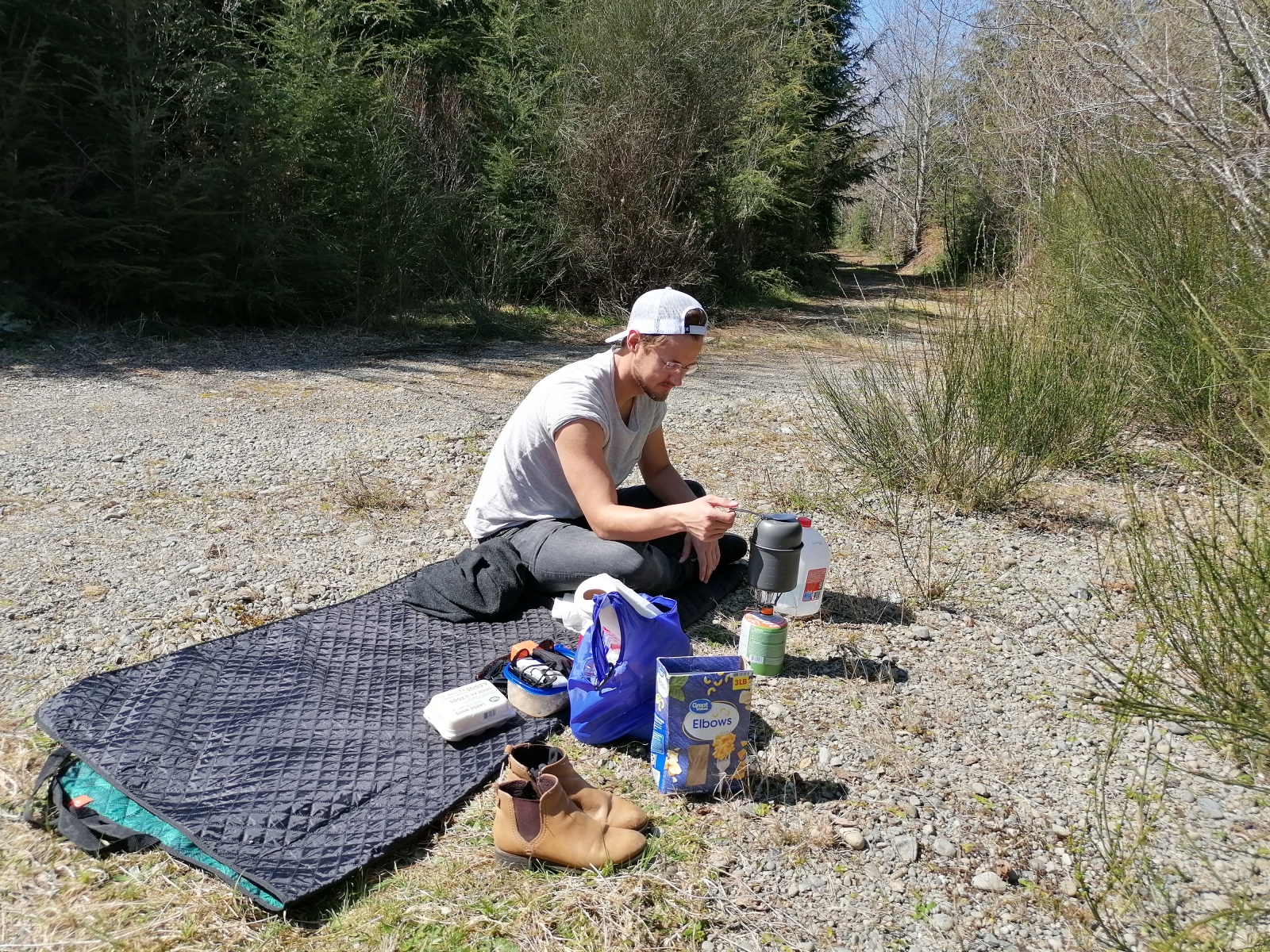 So fuhren wir dann gespannt auf eine Gelegenheit von Monterey ab (ein kurzer Stopp bei Walmart sicherte unsere Vorräte) und waren guter Dinge was passendes zu finden. Stetige Ablenkung (auch für den Fahrer muss ich gestehen) war der Blick auf den Ozean und die gelegentliche weiße Fontäne… Wale ey, das wird nicht uncooler beim fünften und sechsten Anschauen! Unser Mittag haben wir dann auf ner Düne mit Seeblick gekocht um ja kein Auftauchen zu verpassen. Nach etwas Suchen fand sich dann auch ein guter Parkplatz. Nicht direkt an der Straße, praktisch leer, Campingtische, Restrooms und ein Zugang zu nem schönen Strand. Volltreffer! Wir richteten uns also ein wenig ein, genossen den Ausblick und gingen auch schon mal zum Strand. Da wurde uns auch klar, dass der nächste Tag zuallererst nicht der Weiterreise nach San Francisco, sondern erstmal dem Strand gewidmet würde.