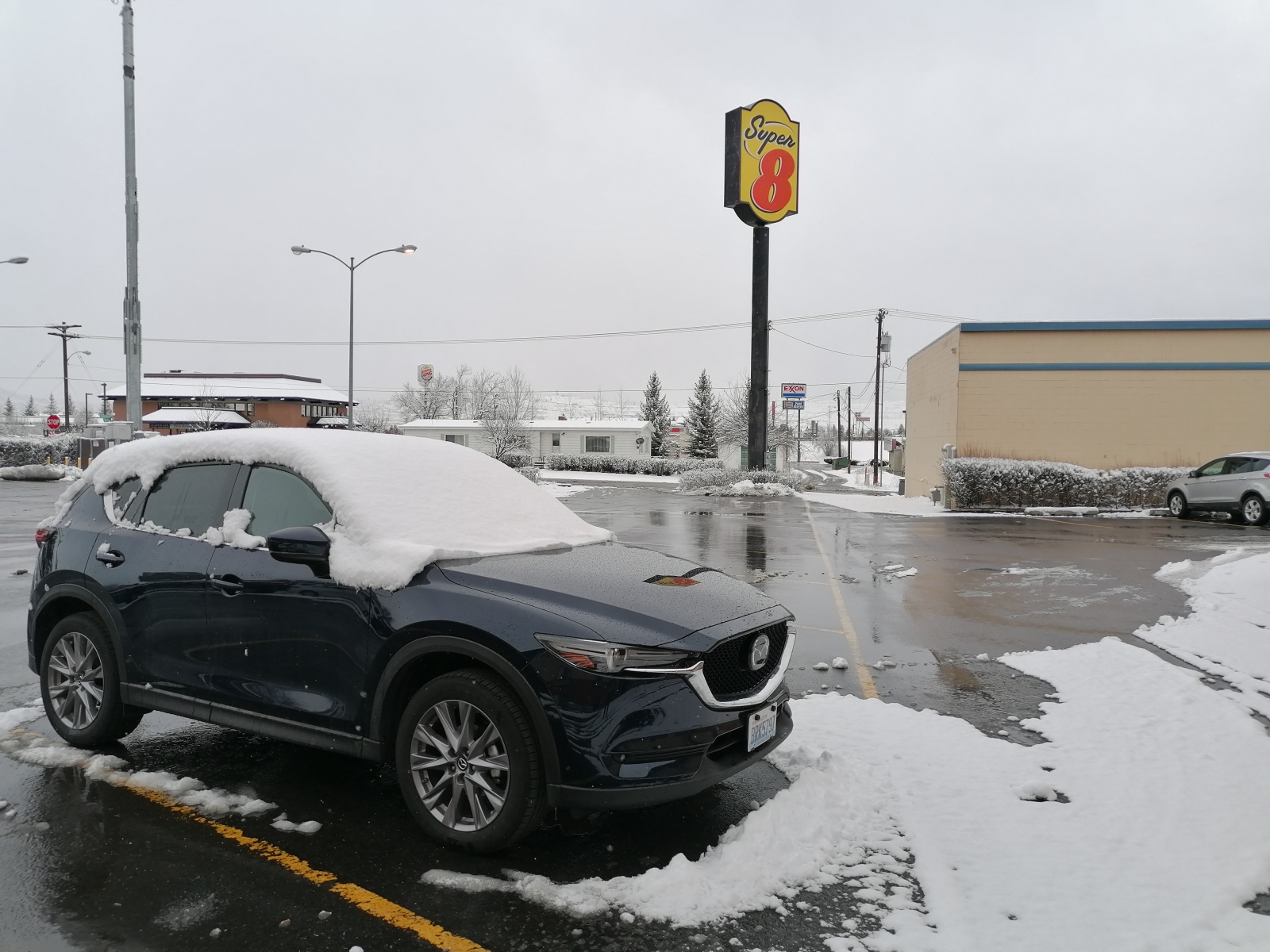 Wie auch immer, bei Frost geht’s halt vorsichtiger bergab und statt sonniger Hügel werden weiße Gipfel und wildes Schneetreiben bewundert. Unser Motel (so clever, nicht campen zu wollen, waren wir dann doch) fanden wir dann problemlos und ne willkommene Dusche später relaxten wir in Missoula, Montana, auf dem Zimmer. In Montana wird wohl erstmal nicht draußen übernachtet.