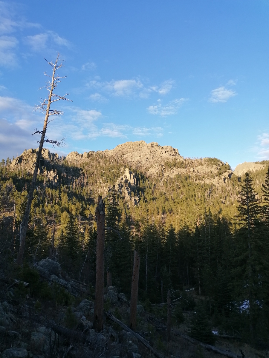 Die Kleinen sollten ein Vorgeschmack auf die weitere Fauna in den Black Hills werden. Danach sind wir los um eine schöne Stelle für die Nacht zu finden. Kleiner Zusatzanspruch: bitte in der Nähe des Sylvan Lake, da wir von dort am nächsten Tag zur Wanderung aufbrechen wollten. Hat geklappt, Waldlichtung abseits der Straße, ruhig, aufgeräumt und als am Abend dann die verschiedenen Reh-Grüppchen vorbeigrasten und auch das Murmeltier an einem Stein 20 Meter vom Auto nochmal den Ausguck bezog einfach idyllisch.
