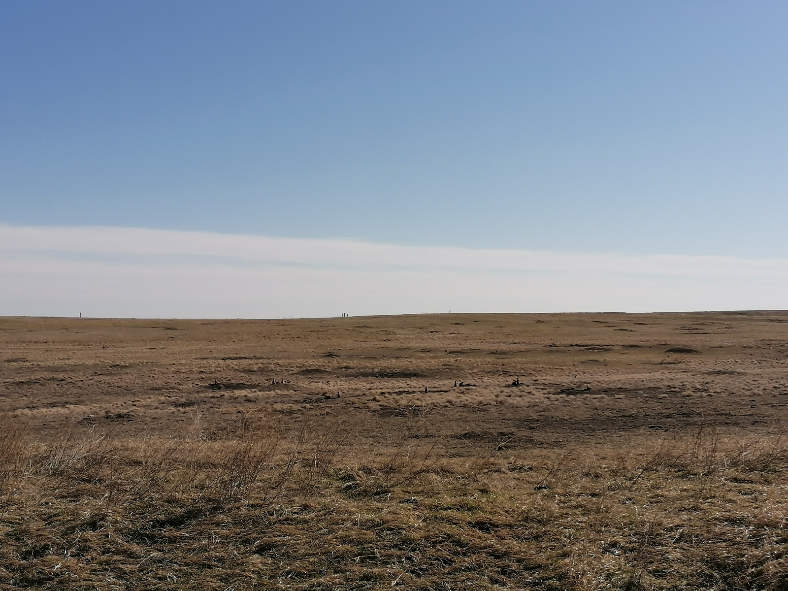 Danach brachten wir einfach mehr Meilen zwischen uns und die Westküste und sahen auch in Wyoming vieeel Land und Landwirtschaft. Wir hatten zum Glück schon vorher nen Spot für die Nacht rausgesucht, sonst hätte das ganz schön schwierig werden können. So mussten wir einfach nur von der großen Straße abfahren, ein paar Bahnschienen kreuzen, auf einem staubigen Feldweg noch zwei Farmen hinter uns lassen und waren Luftlinie 500m vom Highway mutterseelenallein in der Prärie. Die wird hier auch gern mal als trockenes Grasland abfällig abgetan, aber wir würden unseren Eindruck definitiv als „auch sehr schön“ beschreiben. Tina fühlte sich sogar an Südafrikas Steppen erinnert – ich würde das als Gütesiegel werten. Weil das Wetter sich schon kurz nach dem Bighorn wieder aufgehellt hatte konnten wir den Nachmittag und Abend dann draußen und im Gras verbringen, bevor wir uns ins Auto verkrochen.