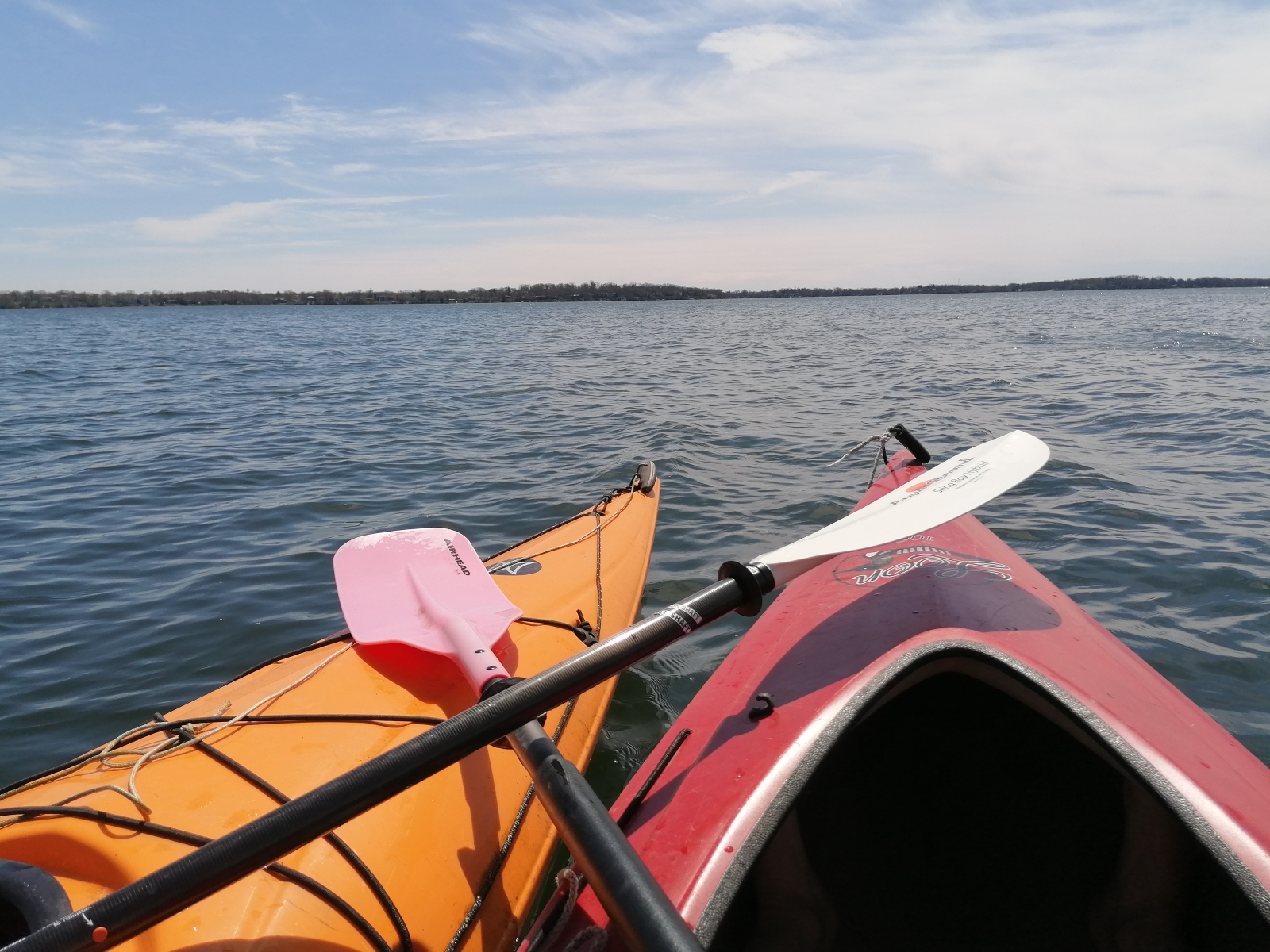 Außerdem waren wir mit dem Kayak unterwegs entlang des Ufers und in dem kleinen Kanal neben dem Grundstück. Zum Kayak muss ich dann noch nen lehrreichen Moment teilen: Ich hatte nach unserer ersten Ausfahrt Lust auf mehr bekommen und mir daher gedacht mal quer über den See und wieder zurück zu fahren. Tina meinte noch weiter draußen auf dem See sei es etwas welliger aber ich war mir schon relativ sicher, dass ich das vom Wasser aus gut würde einschätzen können. Dämlich war ich. Nachdem ich den Uferbereich hinter mir gelassen hatte und es ca. 100m auf den See geschafft hatte, nahm der Wind ziemlich plötzlich zu. Ich spürte ne Böe im Rücken, wollte mich gerade umsehen, als mich eine Welle einfach ein Stück mitnahm. Darauf folgte noch eine, und noch eine. Plötzlich war ich mittendrin. Ich sah angesichts der Wellen (nen halben Meter hatten die schon…) keine Chance das Kayak ohne kentern zu wenden – is doof, wenn einem erst klar wird, was man für’n Anfänger is, wenn’s etwas zu spät ist. Also konnte ich nur mit den Wellen weiter. Ich mühte mich mächtig ab das Kayak bloß nicht quer zu den Wellen zu stellen und manchmal surfte ich regelrecht. Das wär echt cool gewesen, hätte ich nicht Befürchtungen gehabt zu kentern und dabei zumindest das Boot einzubüßen. Ich dachte mir die ganze Zeit: „Hey Erica, ich hab euer Kayak versenkt, weil ich mich überschätzt hab.“. Nee, das durfte nicht passieren. Es dauerte gefühlt ewig, bis ich es in die Nähe des gegenüberliegenden Ufers geschafft hatte und irgendwie wurde es ufernah auch nicht ruhiger. Ich konnte mit Mühe nen Steg anfahren und dann das Boot zum Ufer befördern. Da stand ich jetzt, auf dem Grundstück irgendwelcher Leute und sah doof aus. Der Hausherrin erläuterte ich, dass ich keine Chance sähe da jetzt zurückzurudern. Ich wollte also warten, dass sich der Wind etwas legt. Nach ca. 25 Minuten sah es eher schlechter als besser aus und so schleppte ich das Kayak vom Wasser am Haus vorbei zur Straße um mir eine Abholung zu organisieren. Während ich da so hockte kam der Hauseigner und fragte, wo ich denn hingehöre. Nach meiner kurzen Erläuterung bot er an mich mit seinem Speedboat rüber zu fahren auf das ich den Rest organisieren kann. Dank dieser netten Geste war ich 10 Minuten später wieder am Haus und um ne Info reicher: Auf der anderen Seite is der Wind meist gemeiner. Das Kayak hab ich dann mit der Hilfe unseres Nachbarn Alan und seines großen Pickups abgeholt und damit ist das Kapitel: „Bringen wir dem Anfänger mal mehr Bescheidenheit bei“ auch beendet. Kayak gefahren sind wir (und auch ich allein) trotzdem weiterhin, aber in die Mitte des Sees hab ich mich nicht nochmal getraut.