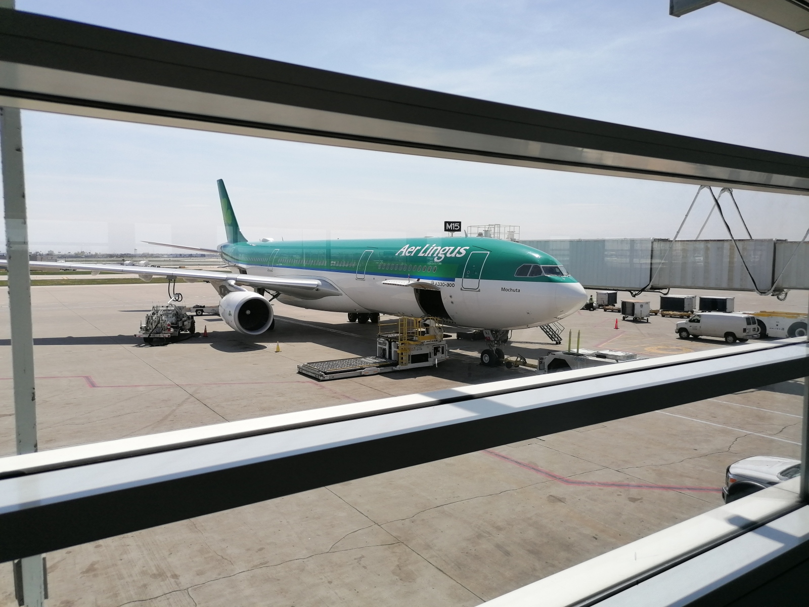 Der Wartebereich vorm Gate war alles andere als voll und das verhieß nen entspannten Flug mit viel Platz, wovon wir ja auch ausgegangen waren. Tatsächlich hatten wir im Flieger freie Wahl, was die Plätze anging, weil man uns eine ganze Reihe zugewiesen hatte. Der hintere Teil des Fliegers blieb gleich ganz leer und das Personal wirkte sehr entspannt – mit Stress war auf dem Flug wohl eher nicht zu rechnen. Der Service war dann auch erste Sahne. Ich glaub so engagiert und freundlich hab ich das noch nicht erlebt. Das Bord-Entertainment war auch gut, aber zu den Filmen kamen wir erst, als sich Tina a.k.a. „Buzz“ und ich a.k.a. „actionjackson“ auf Platz 1 und 2 der Bestenliste bei Tetris eingetragen hatten. Wer uns herausfordern will muss sich nur in nen Flieger von Aer Lingus setzen und kann zeigen, was er/sie drauf hat 😉 .
