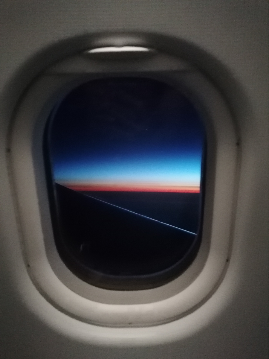 Der Flughafen war, wie schon zwei Tage zuvor, verwaist. Ich kenn das ja eher nicht so, dass das Personal gegenüber den Fluggästen deutlich in der Überzahl ist. Wir fuhren im leeren Shuttlebus mit ner super-netten Busfahrerin zum Terminal für internationale Abflüge und setzten uns in die leere Abflughalle. Ab jetzt: Warten (und fest dran glauben, dass der Flug geht). Ein bisschen Abschiedsstimmung kam dann doch auf, aber tatsächlich lenkte uns die Verunsicherung immer wieder gründlich davon ab. Nicht nur die Verunsicherung, ob der Flug denn ginge, sondern auch die bezüglich unseres Gepäcks. Wir waren nach Probewiegen direkt an einem der verlassenen Check-In-Schalter mit unseren Taschen hart am Limit und bei einer auch mindestens 3kg drüber. Ich mein, man kann immer was wegwerfen, aber wenn wir das gewollt hätten, würde der Kram ja jetzt im Apartment in Chicago stehen. Die Erleichterung kam dann mit dem Check-In. Der Flieger geht! Und die neue Tasche war perfekt – sie hatte genau dort die Räder und Standhilfen, wo die Waage endete. Also thronte sie mit angezeigten 16kg anstelle ihrer tatsächlichen 26,5kg mehr über, als auf der Waage. Das Personal bemerkte es nicht, wir waren erleichtert und endlich auf dem Weg zum Flieger.