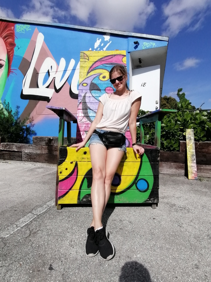Wir haben uns gleich nach dem Frühstück losgemacht nach Wynwood. Das ist ein Stadtteil von Miami, der für seine Streetart berühmt ist. Und tatsächlich gibt es dort an praktisch jeder größeren Wandfläche teilweise wunderschöne Graffitis. Man fühlt sich ein wenig wie ein Schatzsucher, wenn man durch die Nachbarschaft streift und ständig in Seitengassen und über die Schulter auf die Rückwände von Häusern schaut um wieder ein neues Bild zu entdecken.