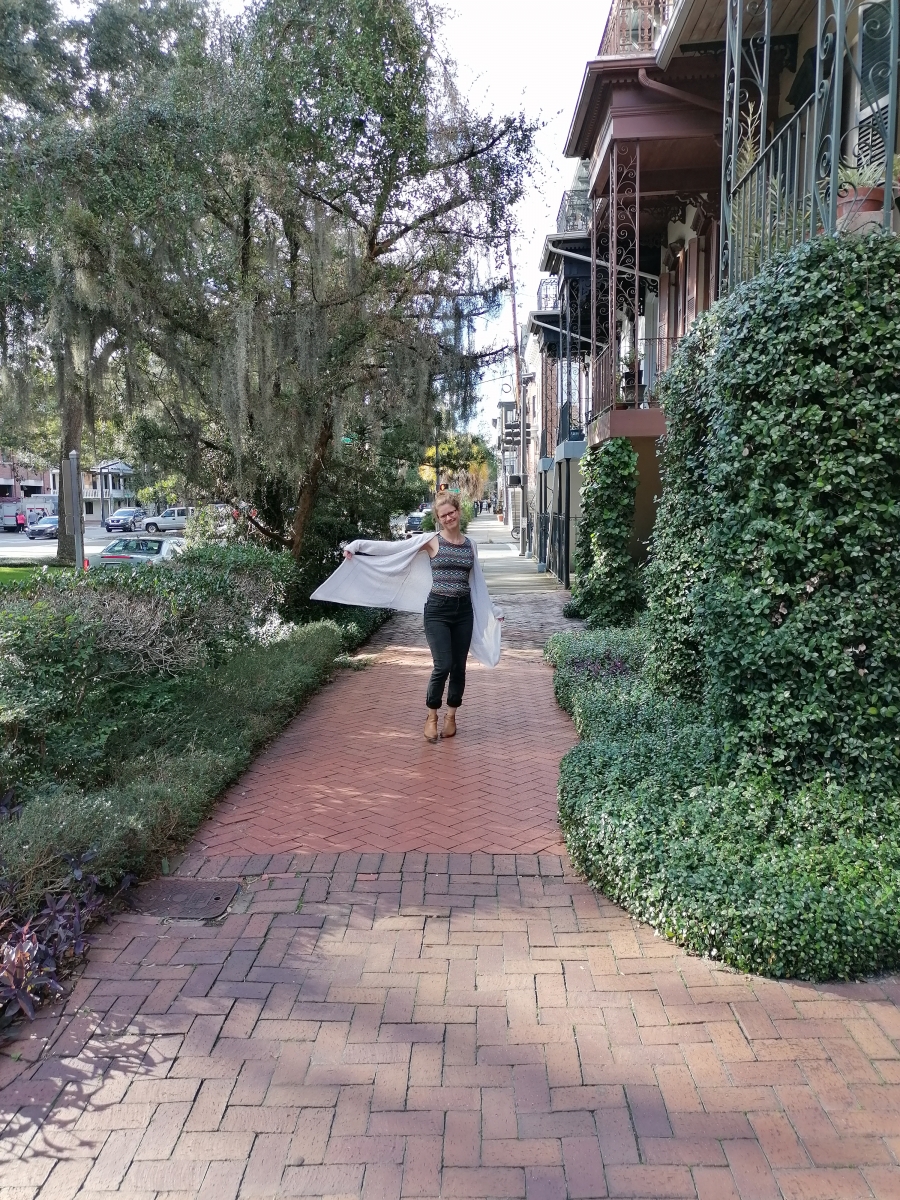 Mit einer guten Empfehlung für nen lokalen Laden in der Tasche sind wir auf zum Frühstückseinkauf. Mit frisch gefüllten Akkus erwartete uns Savannah – übrigens die Partnerstadt von Halle… Savannah ist eine für amerikanische Verhältnisse sehr alte und sehr europäische Stadt. Deshalb ist sie zu Fuß, wie wir es bevorzugen, sehr gut zu erschließen. Tatsächlich erinnerten uns die Architektur und auch die Abfolge von kleinen Parks etwas an London. Zum Glück ließ uns das Wetter aber nie vergessen, dass wir in den Südstaaten waren. Was dabei auch immer hilft: Wenn jemand seine Schildkröte auf der Straße gassi führt. Seht euch einfach das Paparazzi-Video unten an – man glaubt es ungesehen kaum.