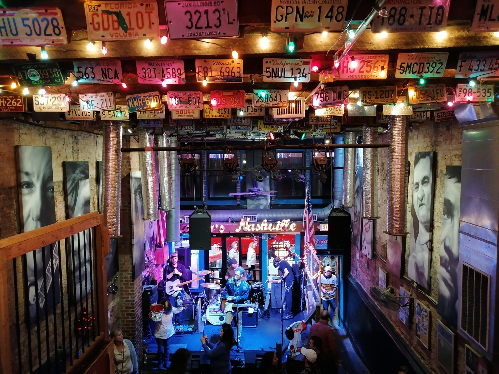 Nächster Stopp, Tootsies. In der ersten Kneipe hatte uns ein älterer und leicht betrunkener Herr angequatscht und neben seinen suffigen Plattitüden hatte er den Tipp, wie man ohne Stress und anstehen in diese Institution von Nashville reinkommen könne. Einfach von der Haupt- in eine Nebenstraße und dann wie ein Stammgast über den unfrequentierten Hintereingang. Klappte auch für uns prima. Der Schuppen war allerdings zu voll für unseren Geschmack. Also nur ein paar Bilder geknipst und wieder rausgeschlichen. Der Hintereingang-Trick funktionierte aber auch bei der nächsten Bar, dem Layla’s. Der Laden war dekoriert mit hunderten Nummernschildern, die Band war sehr unterhaltsam und das Bier schnell bestellt. Für uns daher definitiv auch ne gute Adresse. Für’s letzte Beer sind wir dann fast bis zum Ende vom Strip, nachdem wir noch in den ein oder anderen Schuppen reingeschnuppert hatten. Die Kneipe hatte 3 Etagen mit Dachterasse und bei der Band im Obergeschoss ging’s entspannter zu, so dass das unser letztes Wasserloch wurde.