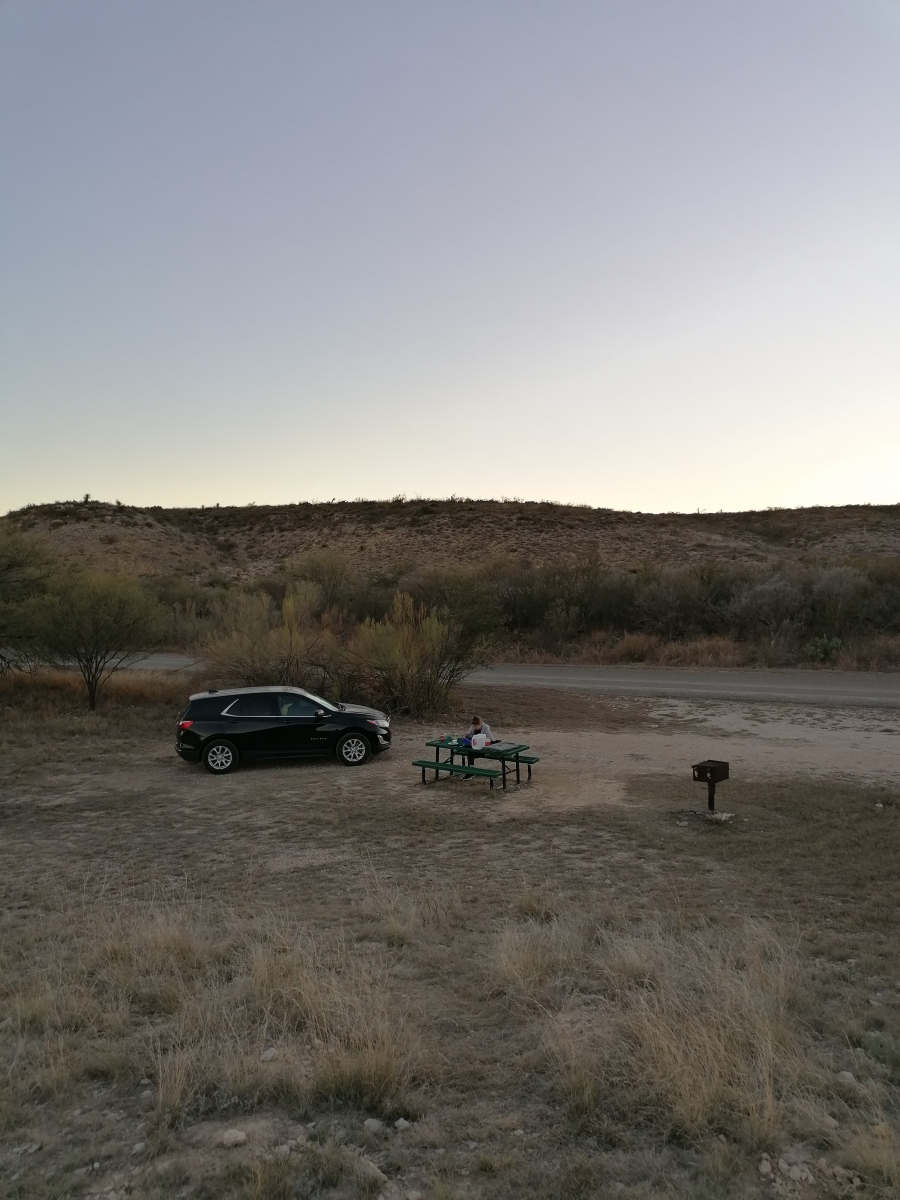 Der Highway raus aus dem Big Bend Ranch State Park war nochmal ein ganzes Stück einfach herrlich, dasselbe auf und ab wie am Tag vorher. In eine kurze Grenzkontrolle (nicht unsere erste) sind wir auch nochmal gekommen, aber die zwei deutschen Weißbrote lösen hier natürlich keinen Alarm aus. Wir passen optisch nicht ins Feindbild – für uns natürlich komfortabel aber eben auch ein kleines Zeichen vom Alltagsrassismus.