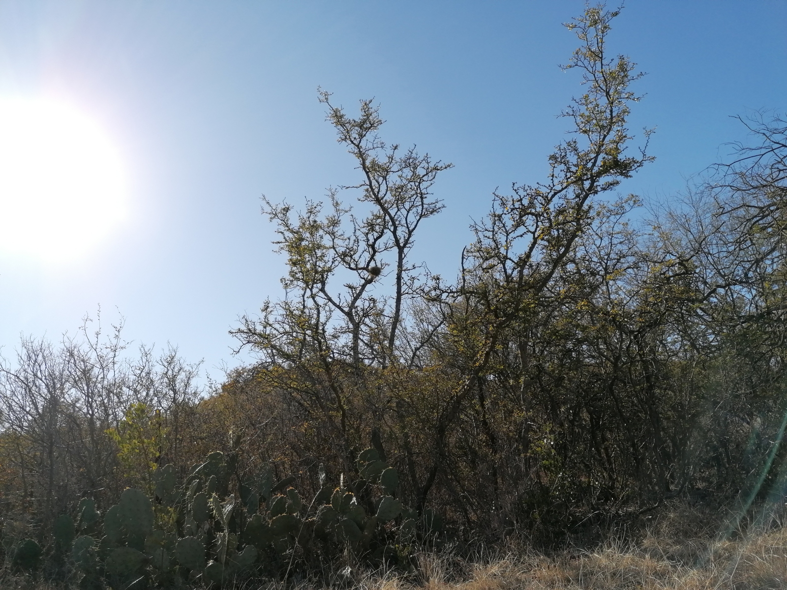 Nach dem Mittag machten wir uns auf den Weg ohne richtiges Ziel. Es war so gegen 13 Uhr. Wir wussten nur, dass wir gegen 16 Uhr wieder zurück sein mussten um noch genug Zeit zu haben, das Feuer für den Abend anzubekommen. Schließlich war das ganze rumliegende Holz nicht wirklich trocken. Also gingen wir erstmal los und wussten, dass wir zur Not nach 1,5h einfach wieder rumdrehen müssen. Es war warm, entspannend und lief nicht ganz ohne Hindernisse ab. Die Wege waren nicht gut zu erkennen und die Wegweiser nicht einfach zu entdecken. Wir folgten dem auffälligsten der Wege und waren gespannt, wo er uns hinführt. Eine Zeit lang begleiteten uns Fußspuren von einem (bzw. 2) hundeähnlichen Tier(-en) – Coyoten? Und kleine Naturschönheiten waren auch zu entdecken. Nach der Halbzeit kamen wir an einem einsam stehenden Haus an. Da wir nicht genau wussten, wo wir waren und uns nicht entscheiden konnten, welche Richtung der Straße wir gehen müssten, sind wir wieder umgedreht. Das letzte Stück haben wir dann etwas abgekürzt, weil wir einen Wegweiser entdeckt hatten, an den wir uns noch erinnern konnten. Es war nicht der einfachste Weg mit all den Stachelsträuchern, umgefallenen Bäumen und rutschigen Steinen entlang einem ausgetrockneten Bergbach. Aber es war der Interessantere. Pünktlich kurz vor 4 waren wir nach 9 km wieder im Camp angekommen. Da wir nur noch 1h Zeit hatten, bevor es dunkel wurde, kümmerten wir uns sofort ums Feuer. Mit der Hilfe von jeder Menge zur Verfügung stehendem Klopapier und einigem trockenen, gekauften Holz haben wir es mit viel Pusten hinbekommen. Das Licht für den Abend war somit auch gesichert.