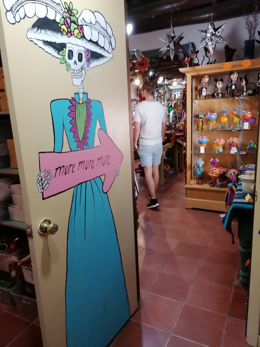 Ungefähr zwei oder zweieinhalb Stunden nach der Abfahrt aus El Paso, rund um die Mittagszeit, kamen wir in Mesilla an. Das historische Stadtzentrum war schnell gefunden und machte direkt nen guten Eindruck. Nicht überlaufen (Vorteile unseres Trips in der Nebensaison), viele schöne kleine Häuser um einen alten Dorfplatz. Die Kram-, Deko- und Souvenirläden haben wir uns gerne angeschaut und tatsächlich auch ein bisschen was eingesackt. Endlich ein paar neue, sehr bunte Socken für mich und für Tina ein Woll-Poncho für die frischen Abende und ein bisschen Schmuck für’s zarte Handgelenk. Letztendlich haben wir uns in den Gassen und Geschäften von Mesilla dann etwas länger herumgetrieben als zuerst geplant, aber unser großzügiger Zeitplan ließ das wiedermal zu.