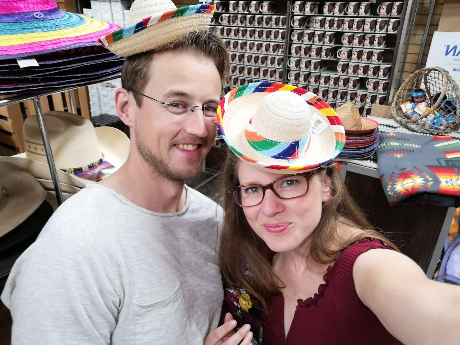 Mein zuvor erstellter Tagesplan hat zu 100% hingehauen. Erster Pluspunkt, es war wunderbar warm. Das macht alles immer so viel einfacher. Zweiter Pluspunkt, alles liegt sehr nah beieinander, da die Stadt jetzt nicht super riesig ist – Praktisch für unseren Ein-Tages-Aufenthalt. Also starteten wir damit frühstücken zu gehen. Fußläufig konnte man ein Café mit eigener Rösterei erreichen, das viel Gutes versprach. Der Coldbrew war super lecker und die Waffeln erst. Paul hörte gar nicht mehr auf mit seinen ganzen „mmmhhmmhmmhhhhh“, während er seine Zimtschnecke aß. Wir hatten absolut keinen Zeitdruck und uns hat es dort super gefallen. Danach stand auf dem Plan den Grenzübergang nach Mexiko zu finden. Wir haben ihn gefunden, aber er war nicht ganz so beeindruckend wie das direkt daneben mitten in der Stadt situierte Chamizal National Memorial, wo wir einiges über die Ländergrenzenverschiebung durch den sich veränderten Lauf des Rio Grande und die nach Jahrzehnten vereinbarte Zurückgabe von mexikanischen Landflächen lernten. Ein sehr engagierter Mitarbeiter hat uns da geradezu mit Infos überhäuft. Dem Angebot uns auch noch nen kurzen Film zum Thema anzuschauen trauten wir uns dann nicht zu widersprechen. Aber es war mega interessant. Außerdem wird dieser Ort (und sein Äquvivalent auf mexikanischer Seite in Ciudad Juárez) dazu genutzt, um kulturelle Vielfalt und zwischenmenschlichen Respekt zu feiern. Und da sind wir ja immer dafür. Wissensgesättigt machten wir uns los um eine hippe Gegend namens „Substation“ zu begutachten. Sie wurde als modern aufgewertetes Areal, das diverse Essens- und Shoppingmöglichkeiten mit Open-Air-Feeling bietet, beschrieben. Ok. Tatsächlich war es schön aufgemacht, aber es war super klein. Egal, ich wollte ja eh nur wegen des „Greetings from El Pasos“-Graffitis hin. Also halb so wild. Substation lag auf dem Weg zum Outlet Center… YAY Shopping :-D… Beide haben wir neue Schuhe bekommen und vieles mehr. War also ein voller Erfolg. Vor allem mit nur einem kleinen Budget. Pünktlich 15min vor Sonnenuntergang kamen wir dann am Scenic Overlook an. Dort hatte man einen großartigen Blick auf El Paso und sogar über die Grenze hinaus nach Ciudad Juárez. Es war ein sehr beliebter Ort. Aber es war genug Platz für alle da. Der Sonnenuntergang zeigte sich in aller Farbenfülle. Wie die Sonnenuntergangsprofis vielleicht wissen, Wolken sind da ein signifikanter Faktor. Es lässt sich meist gar nicht so richtig auf den Bildern einfangen, aber es war einfach wunderschön. Wir waren solange da, bis es ganz dunkel war. Die Stadt ist hellbeleuchtet und wer sieht nicht gern von einem Berg hinunter auf eine beleuchtete Stadt. Das gibt dem ganzen einfach nochmal ein ganz andere Stimmung. Um unseren Hunger zu stillen, suchten wir uns etwas, was ganz in der Nähe von unserem AirBnB war. Und das war gar nicht so einfach. Vieles hatte geschlossen. Doch das L&J Café war die Lösung. Dabei handelte es sich um eine Kneipen-Restaurant-Kombination, die tolles mexikanisches Essen anboten. Im Laufe des Abends stellte sich mithilfe vieler Zeitungs- und Zeitschriftenartikel an den Wänden des gesamten Lokals heraus, dass dieses Restaurant genau in diesem Haus schon bald seinen 100sten Geburtstag feiern wird. Man konnte die ganze Geschichte anhand der Aushänge nachvollziehen. Ein Kellner war begeistert von unserem Interesse und wieß auf weitere Informationen in einem anderen Raum hin. In diesem Raum hatte man während der Prohibition das eigene Bier gebraut und versteckt… Das Essen war hervorragend und insgesamt war es ein mitreißendes Erlebnis. Sehr glücklich und zufrieden mit dem Tag fielen wir ins Bett.