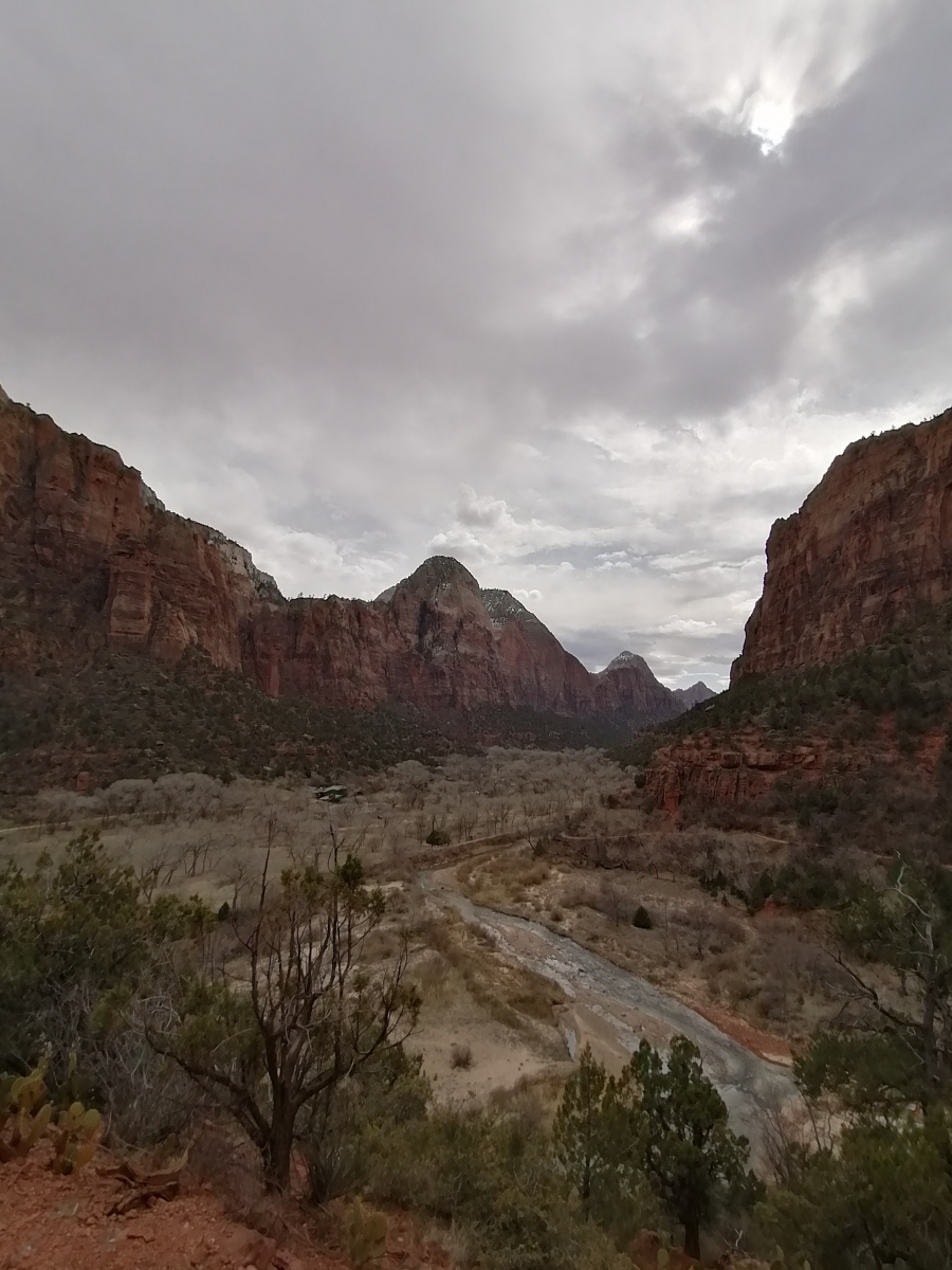 Da der Park diesmal nicht weit weg lag, hatten wir jede Menge Zeit für unser Inklusivfrühstück mit Kakao und Waffeln und Erdnussbutter-Toast. Natürlich auch alles zum Mitnehmen ;-). Gestärkt machten wir uns auf den Weg nach Zion. Dort angekommen, wunderten wir uns über die vielen Leute. Es war wohl ein hervorragender Tag für diesen Park. Die Parkplatzsuche gestaltete sich etwas schwierig. Alles war voll. Aber da man sich im Park ab dem 01.03. nur zu Fuß oder mit Shuttle-Bussen forbewegen darf, mussten wir unser Auto irgendwo abstellen. Mit etwas Kreativität fanden wir ein Plätzchen (und inspirierten auch andere damit).