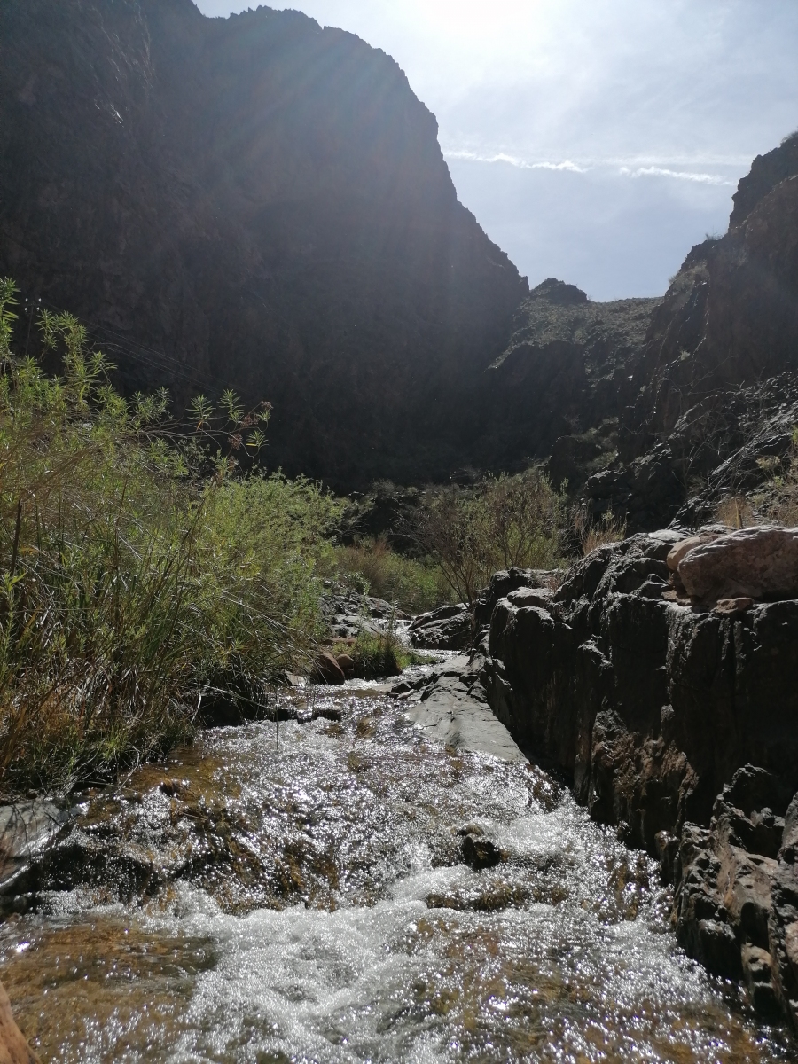 Warum wandern wir? Na wir wollen die Dinge eben erleben und nicht nur von der Ferne anschauen. Manchmal hört man, dass etwas besonders schön sei, manchmal winkt ein Gipfel, manchmal plätschert ein Wasserfall. Und manchmal liest man überall: „Versuchen Sie bitte nicht, innerhalb eines Tages in den Canyon zum Fluss und wieder heraus zu wandern.“ Passt mal auf, liebe Bedenkenträgerinnen: Für eine Übernachtung im Tal haben wir nicht die Ausrüstung und so fix kommen wir auch nicht wieder. Also gehen wir da runter und wieder hoch. In einem Tag. Habt euch nicht so. 😉